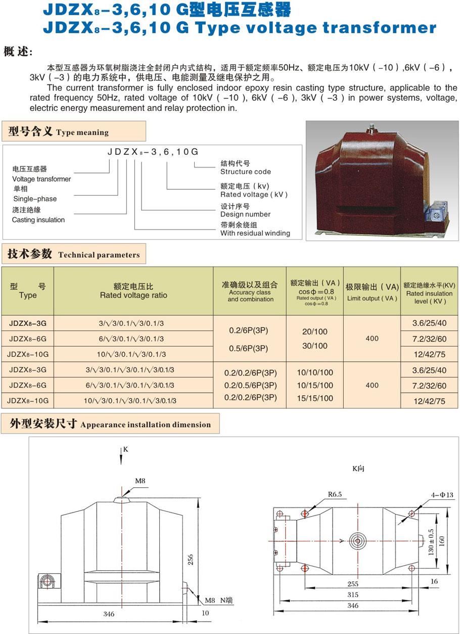 JDZX8-3,6,10G型電壓互感器